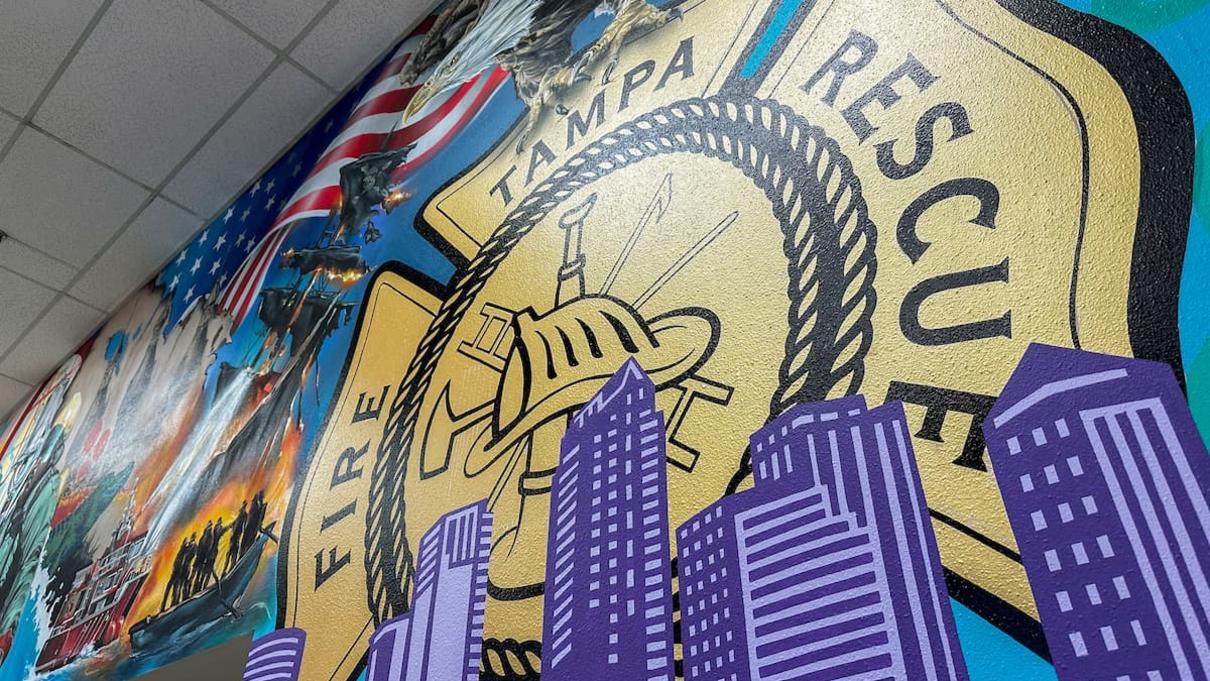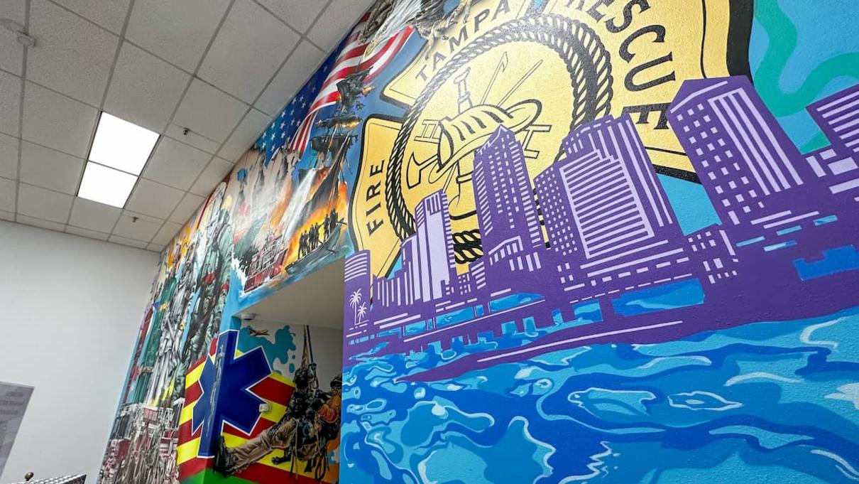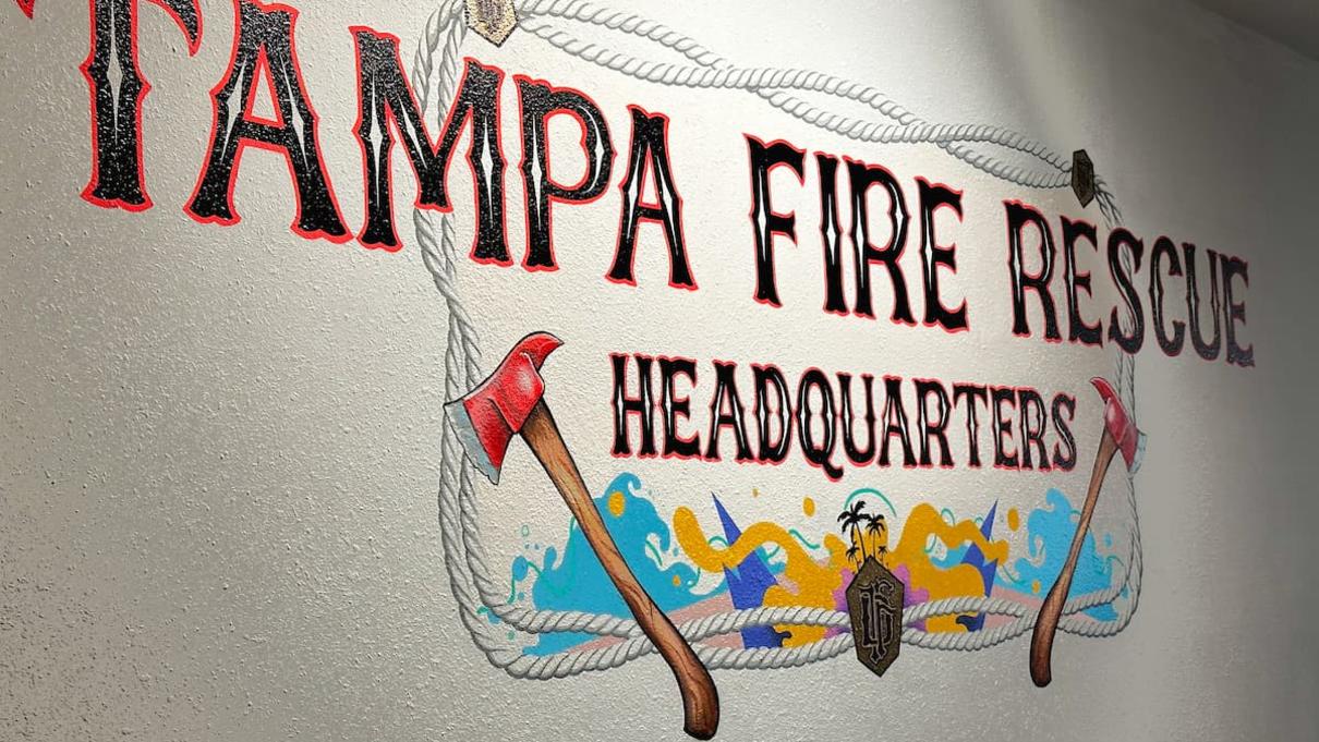 The City of Tampa commissioned Frankie Gonzalez, a Tampa artist, to create a site-specific mural that pays tribute to the history and services provided by Tampa Fire Rescue. His mural invites visitors and employees at Tampa Fire Rescue to take a moment to honor and celebrate the individuals who dedicate themselves to the department's core values, which are integrity, honesty, loyalty, and trust.