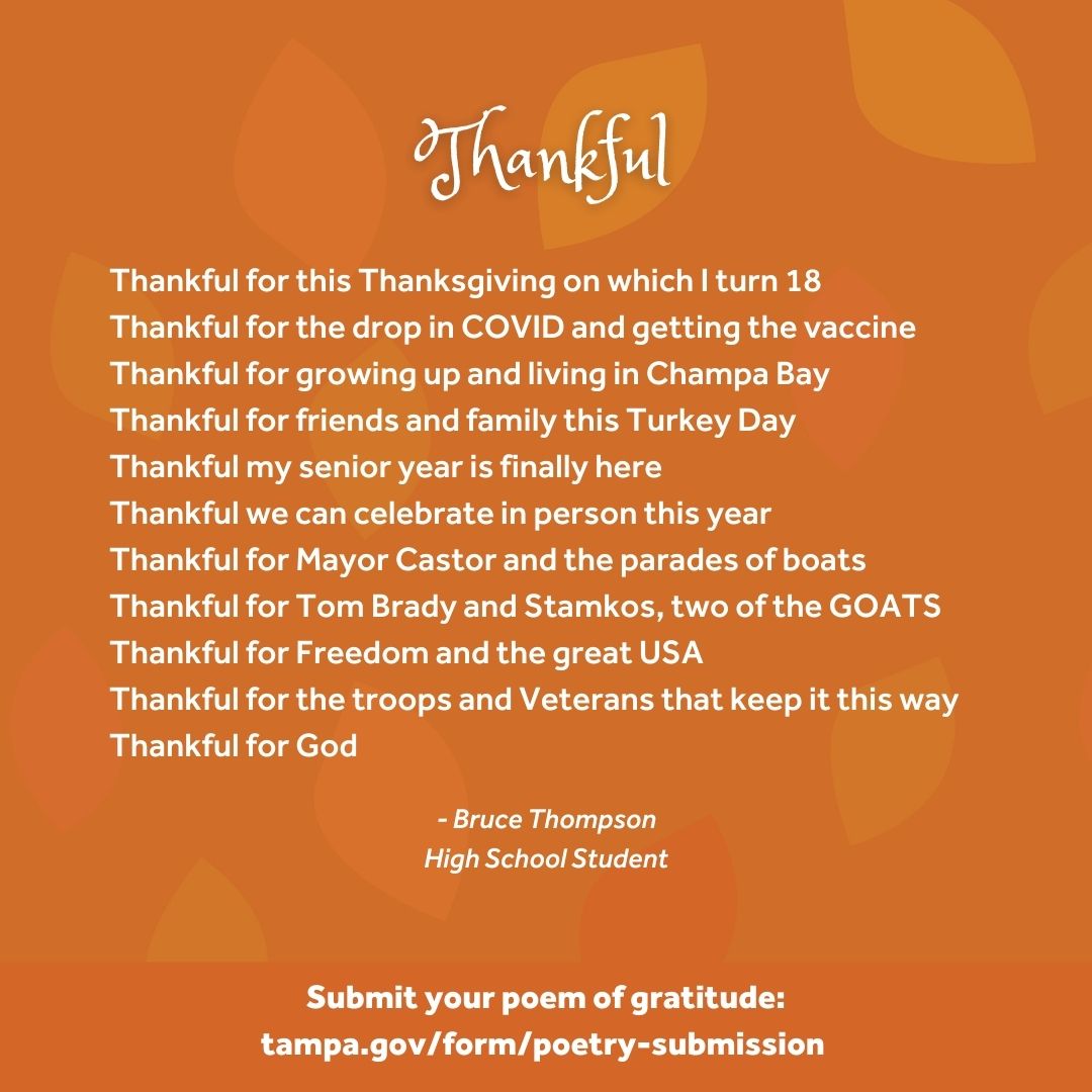 Over the Thanksgiving weekend, we asked you to share a poem of gratitude. The intent of the poetry writing activity was to be cathartic in nature, offering a fun, creative writing exercise for families or individuals to take part in, during the days leading up to Thanksgiving. Here are a few poems that were submitted. We hope this was a relaxing time for you and your family.