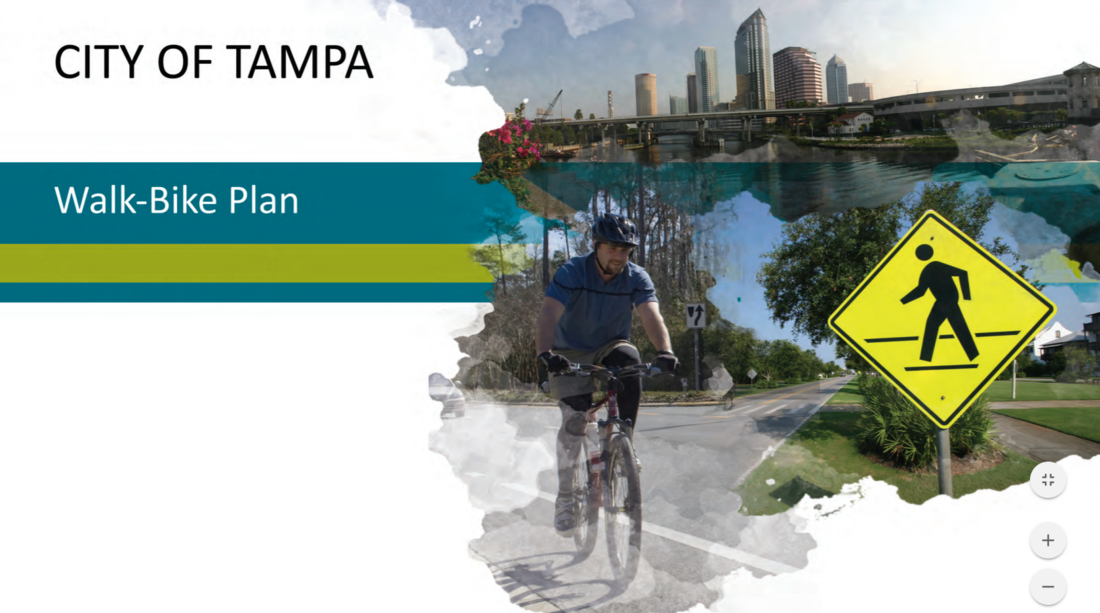 The City of Tampa recently finished the Walk-Bike Plan and appendices, which establishes a grid of bicycle and pedestrian facilities, linking the University of South Florida, Downtown, and the Westshore District.  Please visit our Complete Streets Program and Sidewalk Program pages for additional information on the City's Walk-Bike and sidewalk projects.  Following are other helpful links: