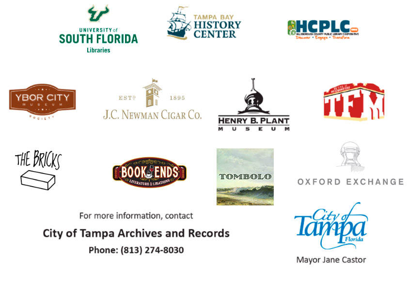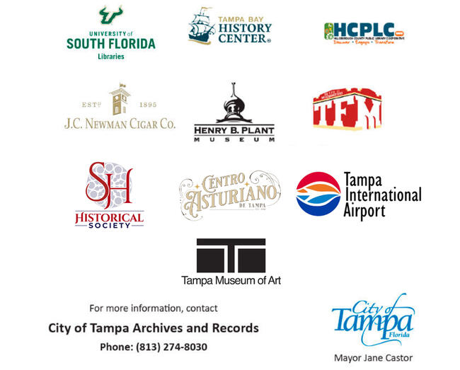 Exhibits and Programs City of Tampa Centro Asturiano de Tampa Firefighters Museum Henry B. Plant Museum J.C. Newman Cigar Company Sacred Heart Church Tampa Bay History Center Tampa-HIllsborough Public Library Tampa International Airport Tampa Museum of Art USF Libraries Archives Awareness Week Brochure With special thanks to our Archives Awareness Week Partners: