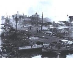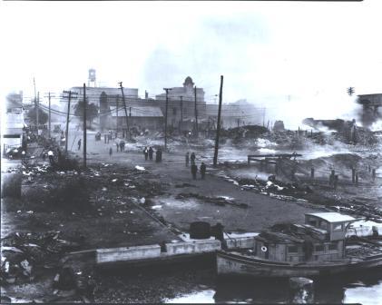 On December 30, 1919, a fire destroyed two city blocks of business and property along the Hillsborough River between Whiting, Tampa and Washington Streets. Light and power wires burned, causing outages to the entire city, east of the Hillsborough River. Damages from the fire, caused when high winds fanned the burning flames, were nearly $400,000.Courtesy of Tampa-Hillsborough County Public Library