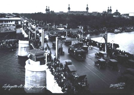 The Cass Street Bridge, 500 feet in length and built in 1926 at a cost of $400,000, was built to serve the southern end of West Tampa and is the second bridge to operate at that site. The adjacent railroad bridge, constructed in 1915, provided access to Port Tampa. Cass Street and the bridge were named after General Lewis cass, who served as Secretary of War under President Andrew Jackson from 1831-36.Courtesy of Tampa Bay History Center