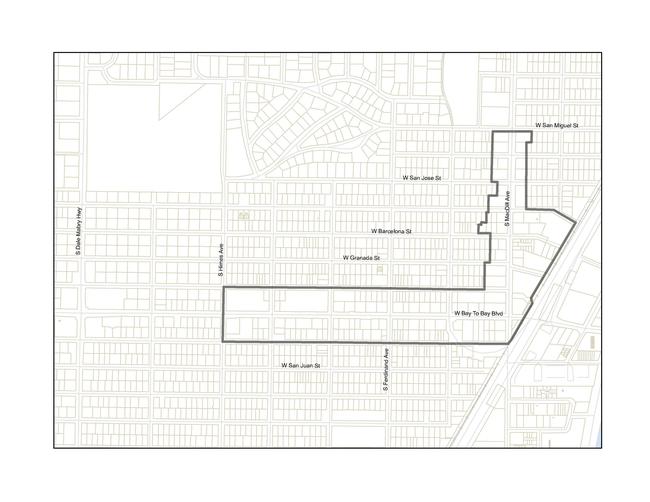 The Palma Ceia Commercial District Plan will address development issues along a 0.5-mile stretch of Bay to Bay Boulevard (one block north and south) from Himes Avenue to the Leroy Selmon Expressway. The study area also includes the commercial areas along MacDill Avenue from San Miguel to the Leroy Selmon Crosstown.