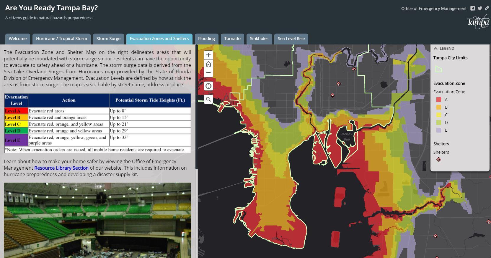 Tampa is an amazing place to live, work, and visit, but like many places it is not immune to major disasters. In fact, our coastal location, topography, and large population make us significantly vulnerable to a wide array of hazards, including hurricanes, floods, tornadoes, and sinkholes. The interactive Natural Hazards Map is designed to provide you with an easy view of what hazards your home, business, or favorite places in the city may face.