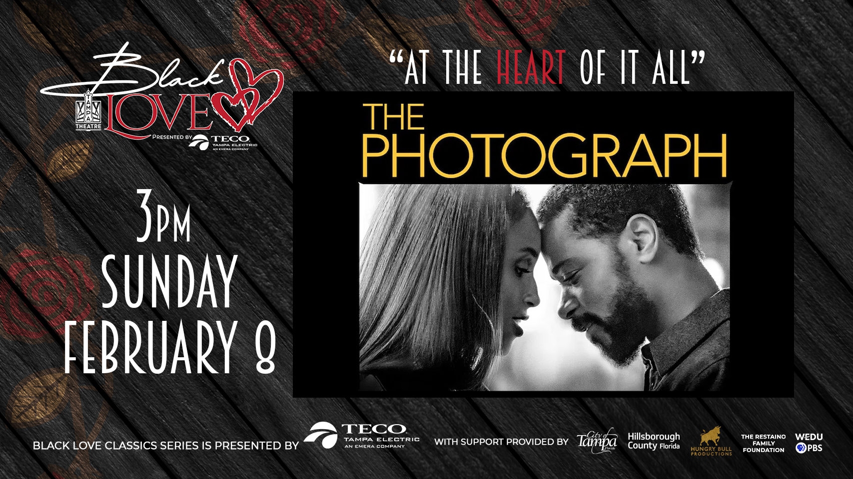The Black Love Classic Movie Series is presented by Tampa Electric (TECO) in collaboration with the City of Tampa’s Community Engagement & Partnerships Department. Post-show Film Talks are sponsored by Hungry Bull Productions and the Restaino Family Foundation. Promotional support provided by WEDU PBS.