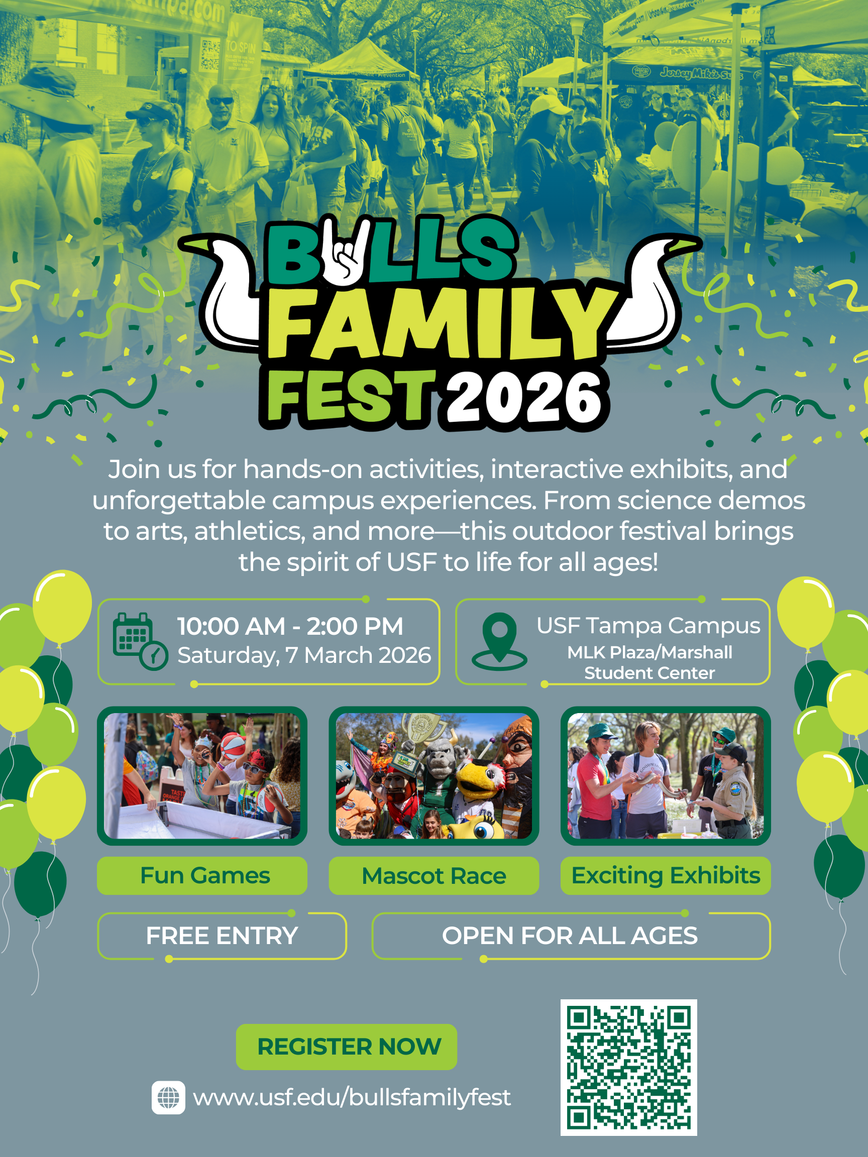 Celebrate with the University of South Florida at this free, family-friendly festival featuring interactive exhibits, hands-on activities, games, and entertainment. Families can explore USF programs and connect with community partners while kids of all ages enjoy a day of fun and discovery on campus.