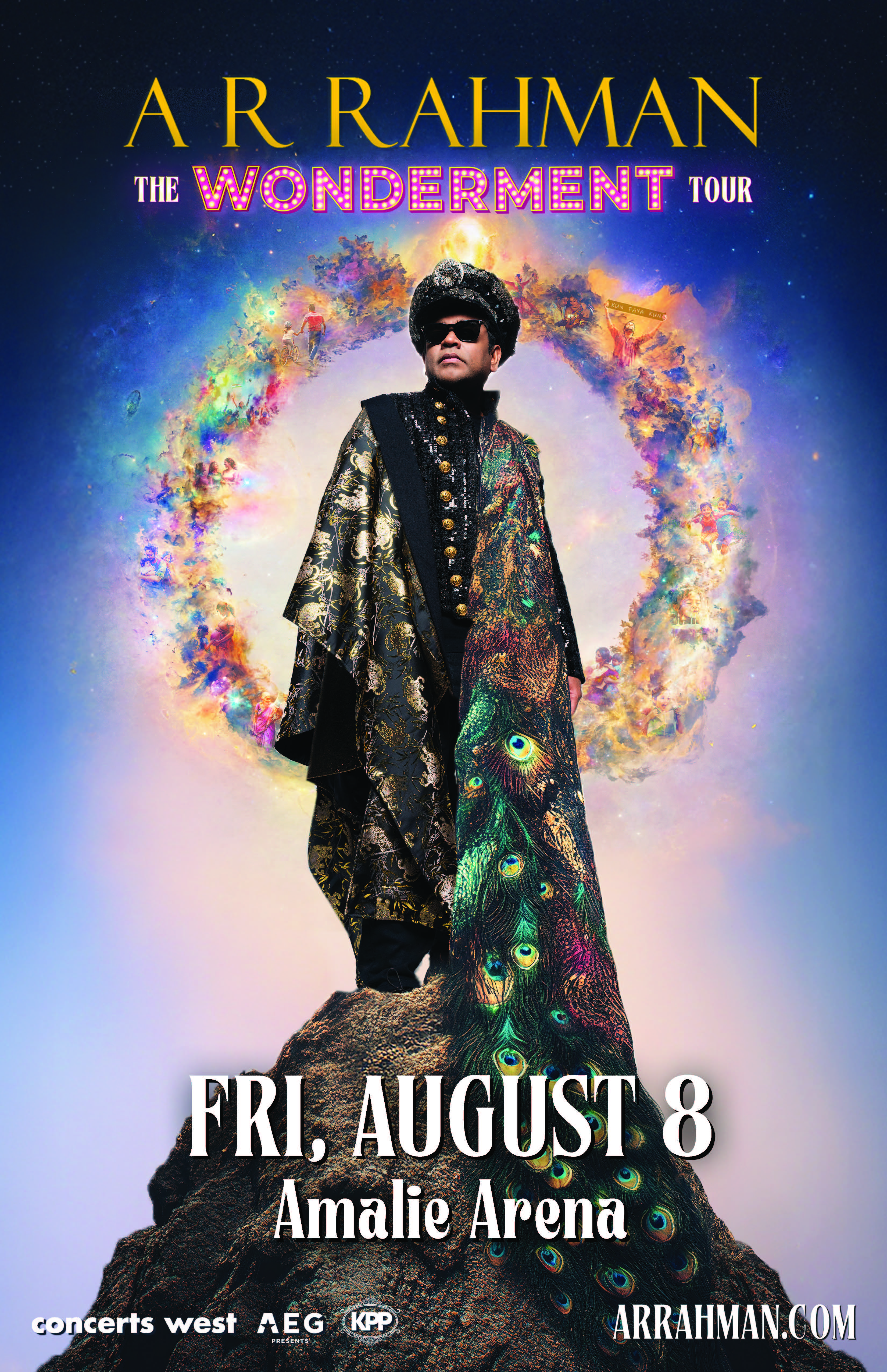 Oscar and Grammy-winning composer, songwriter, and international recording superstar A.R. Rahman will launch his highly anticipated “The Wonderment Tour” across North America in the Summer of 2025. The 16-date arena tour makes its way through Tampa, FL, with a stop at the Amalie Arena on Friday, August 8, and includes major performances in Toronto, Boston, Dallas, Chicago, Los Angeles, New Jersey, and more.