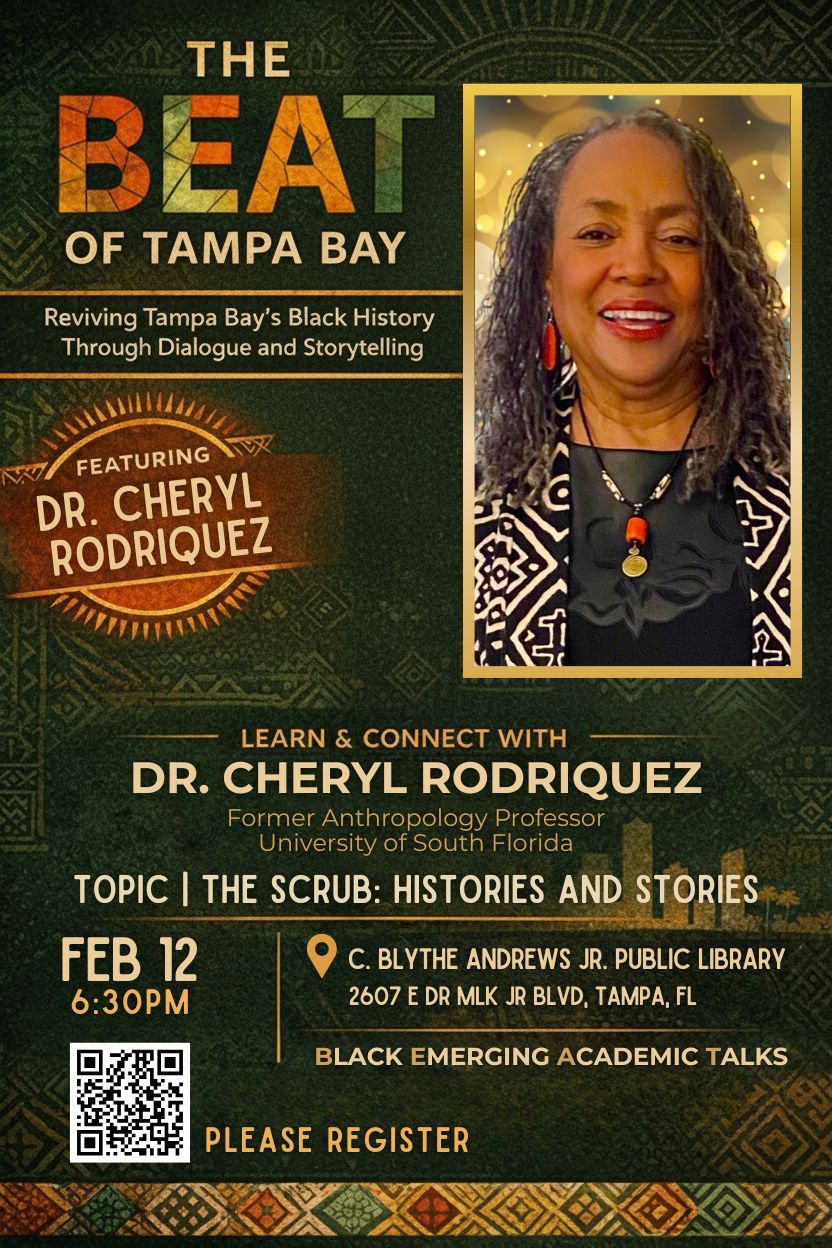 The BEAT of Tampa Bay (Black Emerging Academic Talks) features a talk by Dr. Cheryl Rodriguez exploring Tampa’s Black history.