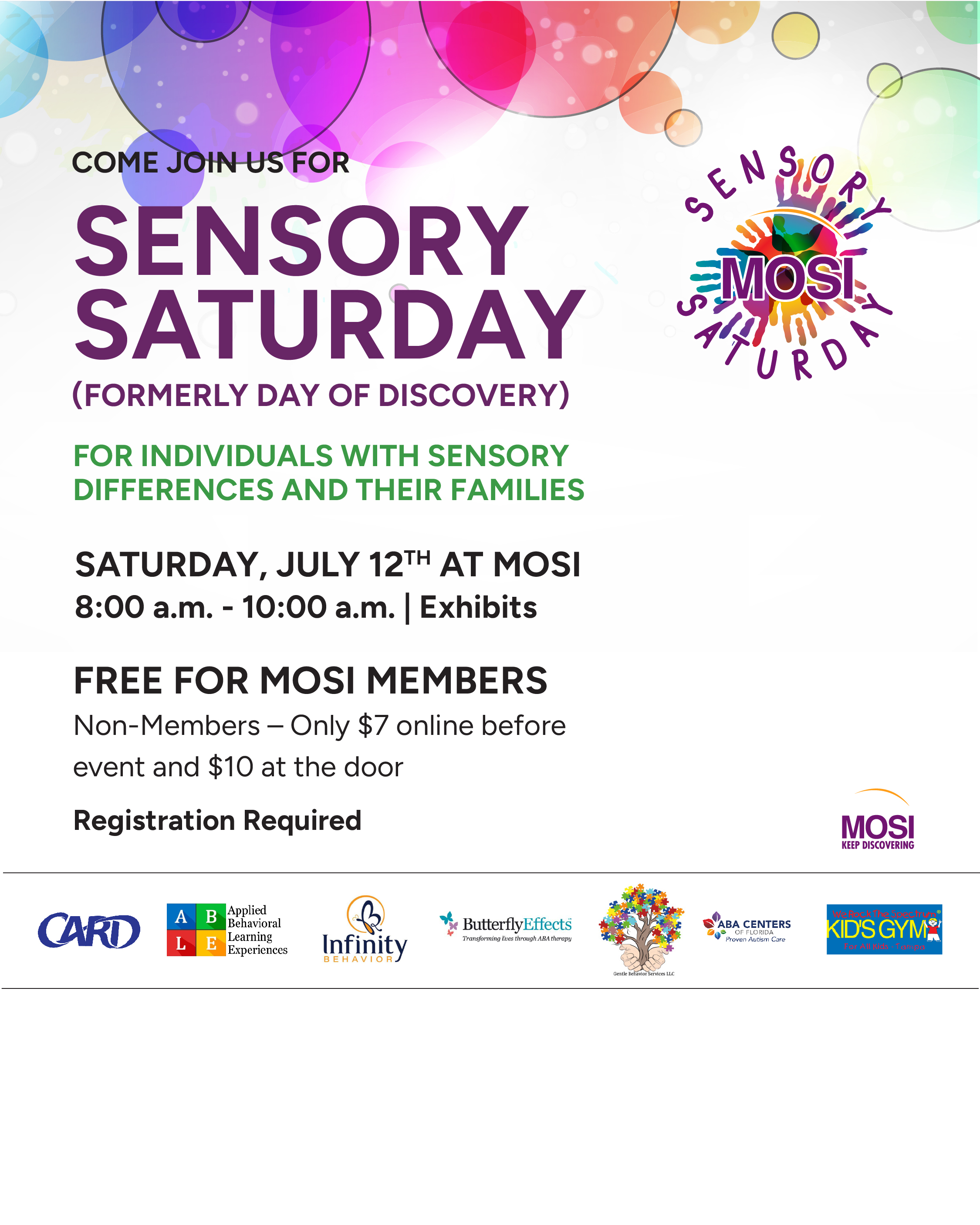 Experience MOSI’s Sensory Saturday, created in partnership with the Center for Autism & Related Disabilities (C.A.R.D.) at the University of South Florida. We designed this event to welcome individuals with sensory differences and their families to explore and connect in a supportive, engaging environment. Guests are welcome to stay past the event time and continue to enjoy the exhibits.