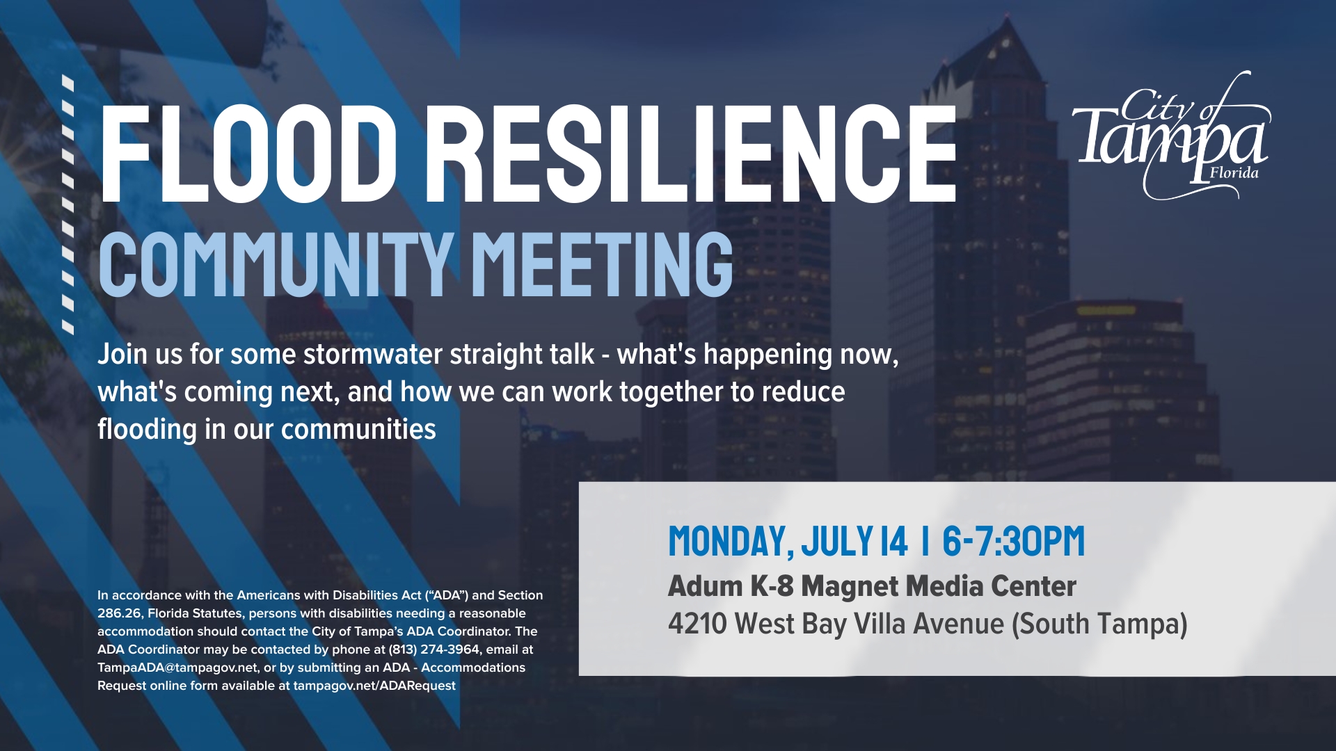 In the wake of Hurricanes Helene and Milton, the City of Tampa is launching a series of community meetings focused on stormwater and flood mitigation. Join us to hear updates on ongoing efforts, learn about future projects, and find out how you can help reduce flooding in your neighborhood.