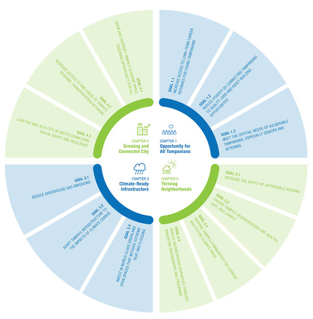 “I am so pleased to release Resilient Tampa: a groundbreaking roadmap that will make our city stronger in the face of our current and future challenges. This document is the culmination of almost 2 years of collaborative effort launched through Transforming Tampa’s Tomorrow (T3). When I took office in May 2019, one of my first actions was to launch T3: a comprehensive strategy to identify solutions across five priority areas for our city. With Resilient Tampa, we are releasing a set of recommendations that brings a critical resilience lens to previous advisory recommendations.” - Mayor Jane Castor