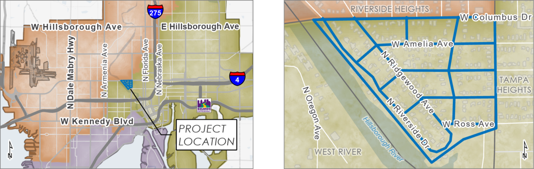 The Ridgewood Park neighborhoods is bounded by North Blvd on the east, Columbus Dr on the north, and the Hillsborough River on the south and west. The proposed project improvements include: