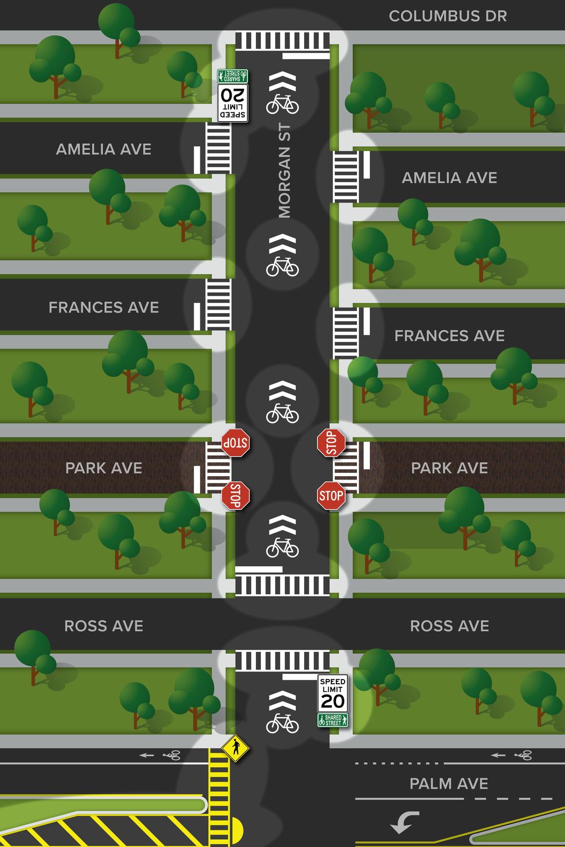 Lastly, "Shared Street" signage will further identify North Morgan Street as a priority bike and pedestrian route.