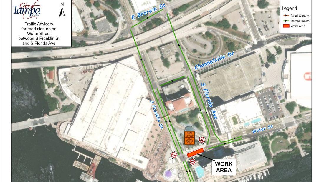 After four years of construction, a new wastewater pipeline will soon become the third longest of its kind in North America. The microtunnel running 60 feet below the water surface of Tampa Bay replaces an aging 54" pipeline originally placed into service in 1951. It will carry nearly one-third of all City of Tampa wastewater. The new microtunnel consists of 7,800 linear feet of pipeline that originates at the wastewater treatment facility, located at the Port of Tampa. Crews drilled 60 feet below the water surface of Tampa Bay and connected the newly constructed microtunnel 65 feet underground at Fort Cotanchobee Park. The pipeline transmits 30%, or 15 million gallons per day, of Tampa's wastewater. Beginning Tuesday, January 30, 2024, the contractor will begin Phase One of connecting the microtunnel to existing pipeline connected to the Krause Street Pumping Station on South Ashley Drive. This will require the closure of Water Street and the intersection of Franklin Street. Northbound and southbound traffic on Franklin Street and access to the Harbour Island Bridge will remain open. The work will continue through the end of February. Variable message boards will be installed in the area to alert motorists of the impending closure and detour signage and traffic control devices will also be in the area to assist with rerouting and traffic flow. "Tampa's Wastewater Department is hitting major milestones as we work toward updating and upgrading our infrastructure," said Eric Weiss, Director of Wastewater for the City of Tampa. "While we are usually out of sight and out of mind, it is critical to keep investing in our infrastructure to continue to provide both reliable and sustainable services now and for future generations." Phase Two of the $83 million project is expected to begin toward the beginning of March. Additional information regarding road or lane closures will be provided once plans have been finalized. A detailed map of the work area and recommended detour route for Phase One is embedded. Additional background information on this project can be found here.