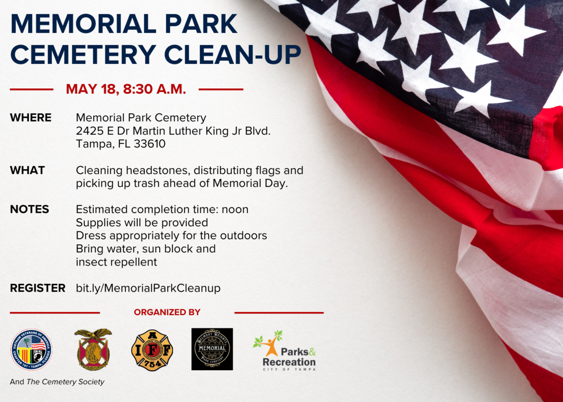 Memorial Park Cemetery is the final resting place of more than 1,000 veterans. The cemetery, which has the only known Florida Negro World War Veterans Memorial, was established in the early 1900s. The City of Tampa purchased Memorial Park in May 2023.