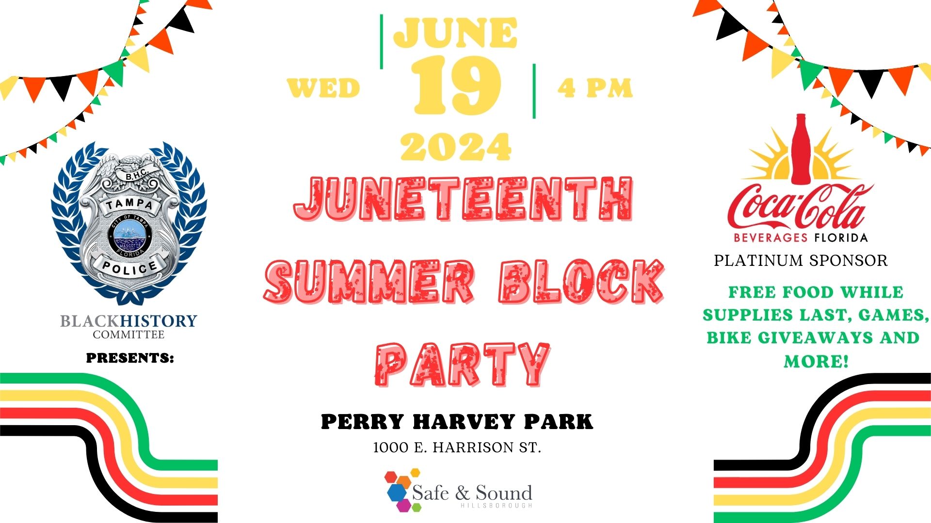 TAMPA, Fla. (June 17, 2024) -- The Tampa Police Department Black History Committee is proud to announce the upcoming Juneteenth Summer Block Party at Perry Harvey Park.
