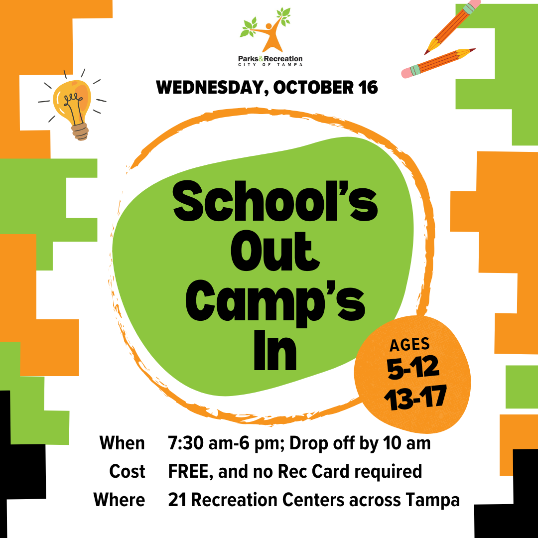 “School’s Out, Camp’s In” will be available at the following Tampa Parks and Recreation facilities: