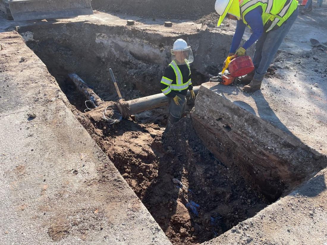 Crews relied on pipe bursting, and Horizontal Directional Drilling to replace water mains. Pipe bursting is a method of replacing pipes that requires no digging and allows crews to simultaneously expand and replace the lines with high quality materials designed to last. Horizontal Directional Drilling is another trenchless construction method that has an entry pit and exit pit, and the new pipeline is pulled into place after drilling the hole horizontally.