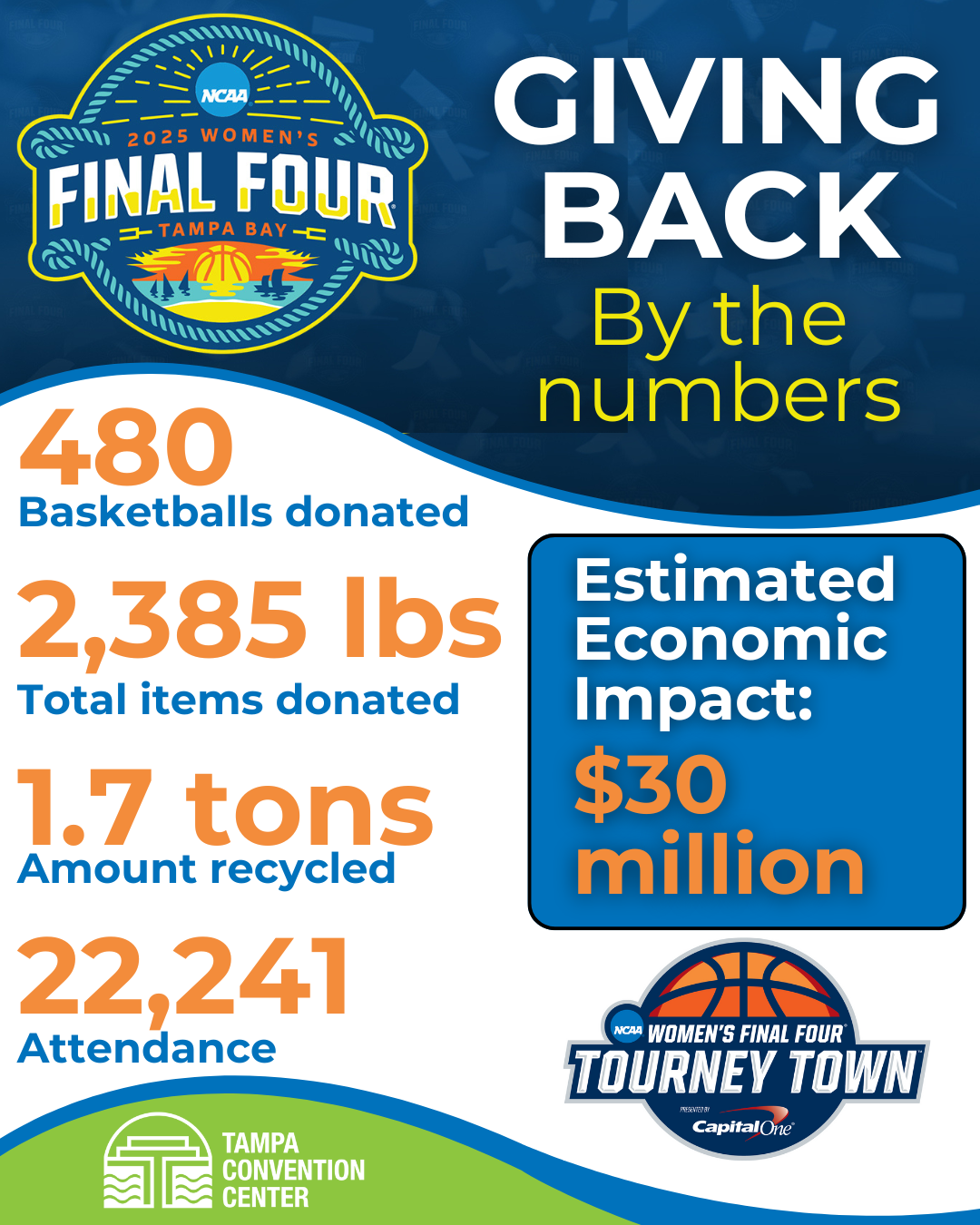 Overall, the 2025 NCAA Women’s Final Four had an estimated economic impact of $30 million for the Tampa region, according to Visit Tampa Bay.