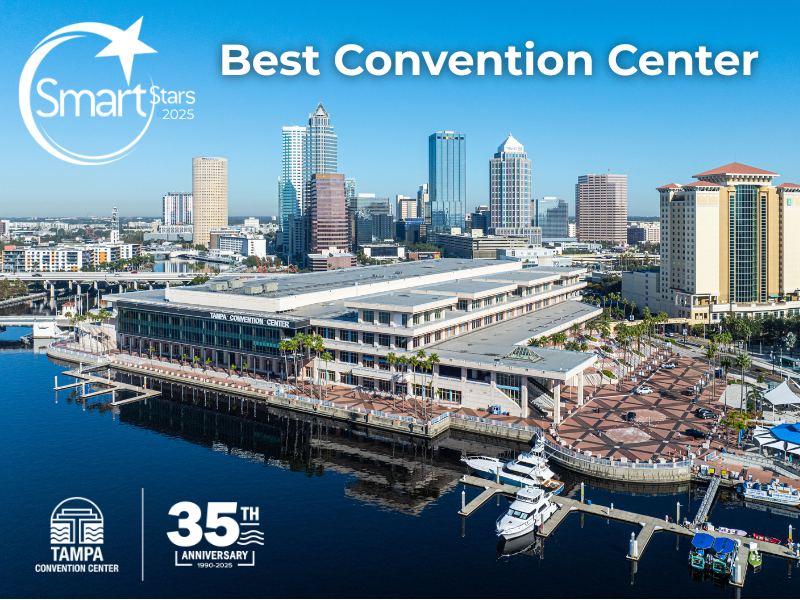 The Tampa Convention Center was honored alongside 20 other centers across North America that are considered the best of the best. As a Smart Stars winner, the Tampa Convention Center is considered an outstanding hospitality brand that reflects the highest standards of excellence in service, amenities, and customer satisfaction. Voters highlighted the Tampa Convention Center as a supplier that will elevate the attendee experience for meetings and events.