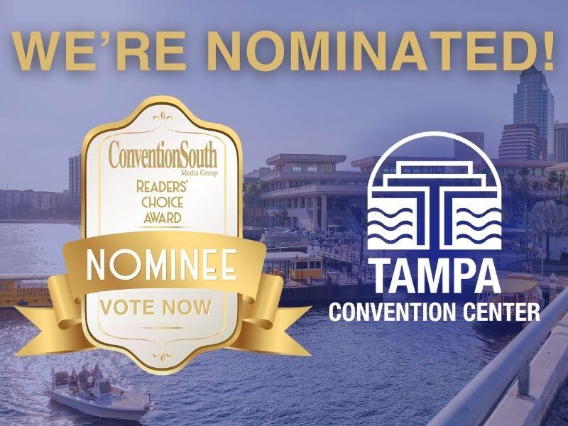 Tampa Convention Center is honored to announce it is nominated for the prestigious ConventionSouth Readers’ Choice Award. This recognition celebrates the best Convention and Visitors Bureaus (CVBs), Convention Centers, Meeting Facilities, and Unique Venues across the Southern United States.
