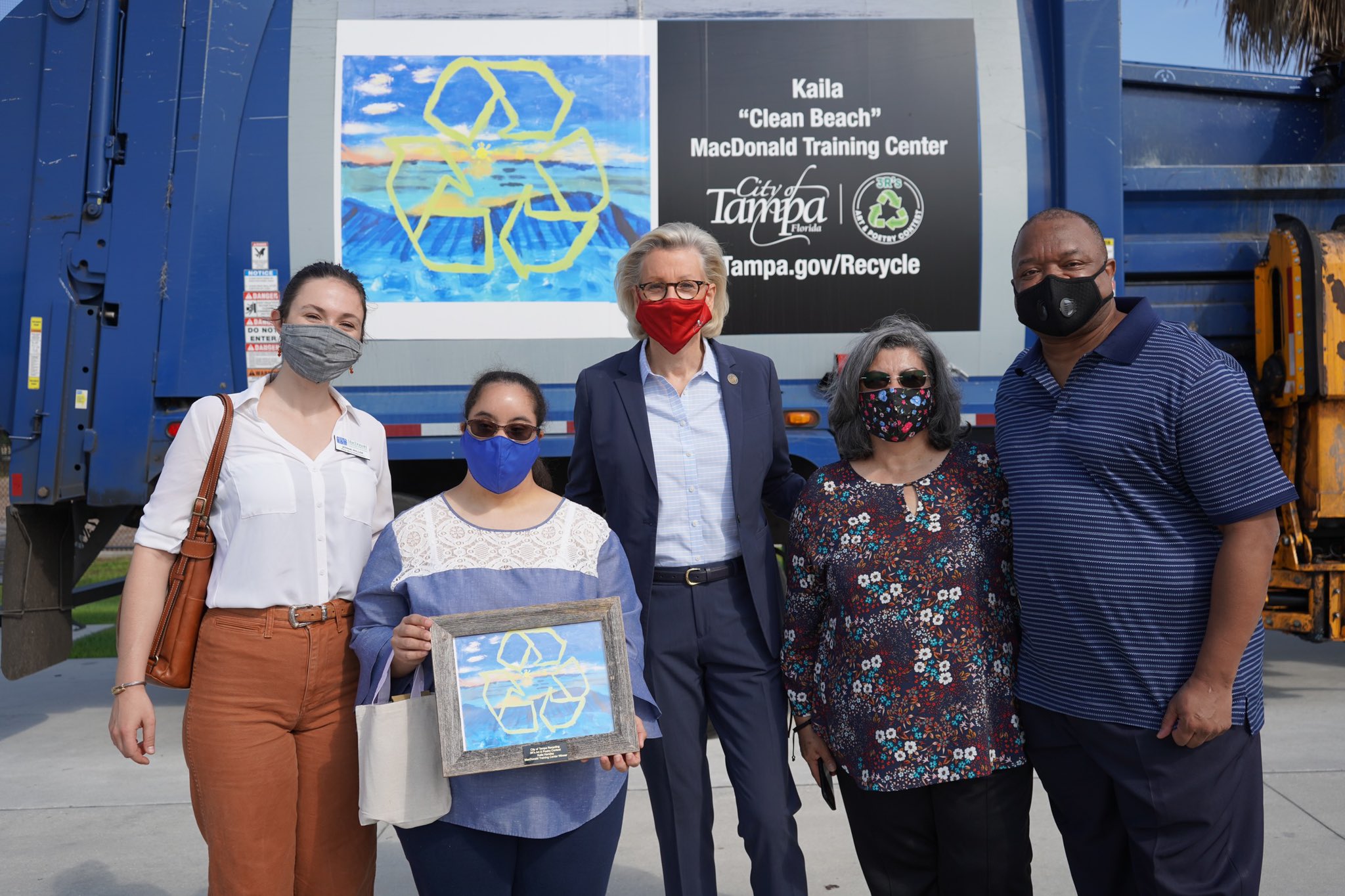 In honor of Earth Month, Mayor Jane Castor and the Department of Solid Waste & Environmental Program Management recognized the 2021 3R's Art & Poetry Contest winners in an outdoor ceremony this morning at Julian B Lane Riverfront Park. Winning artwork will be displayed on recycling collection vehicles and winning poetry will be displayed onsite at Julian B. Lane Riverfront Park.