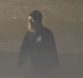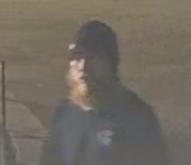 The first suspect appears to be an older white male with a beard and a pot-belly, who has tattoos on the outside of both upper arms. The second suspect appears to be a younger white male with a red beard.