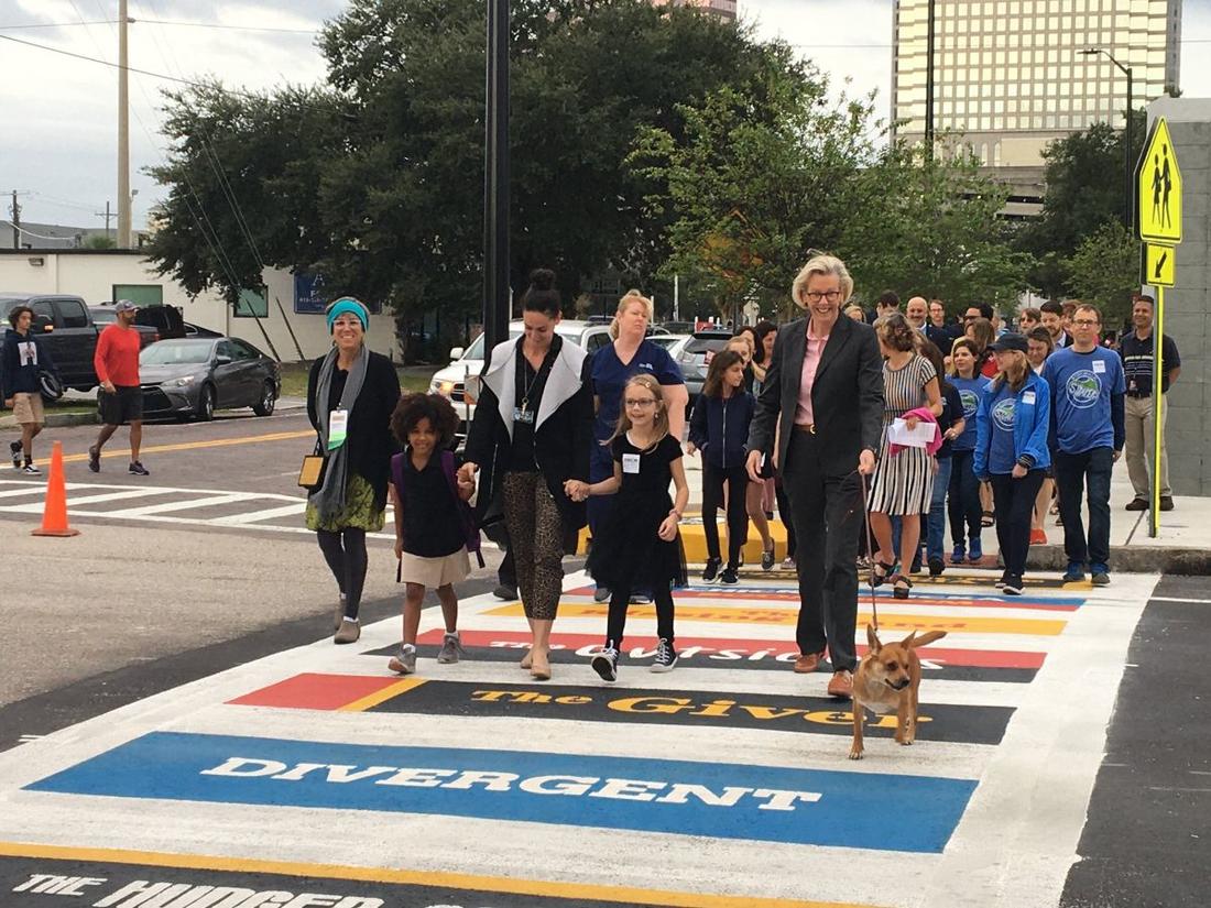 The City's first artful crosswalk was unveiled in November 2019 at Rampello K-8 Magnet School, at the intersection of Washington and Jefferson streets in Downtown Tampa. More enhanced pedestrian crossings are set to be painted near schools throughout Tampa this year.