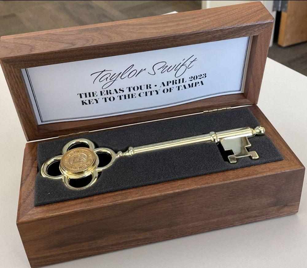 In videos posted to the City of Tampa’s Instagram, Twitter, Facebook, and TikTok, Mayor Jane Castor presents a key to the city to Taylor Swift and invites her to be mayor for the day.
