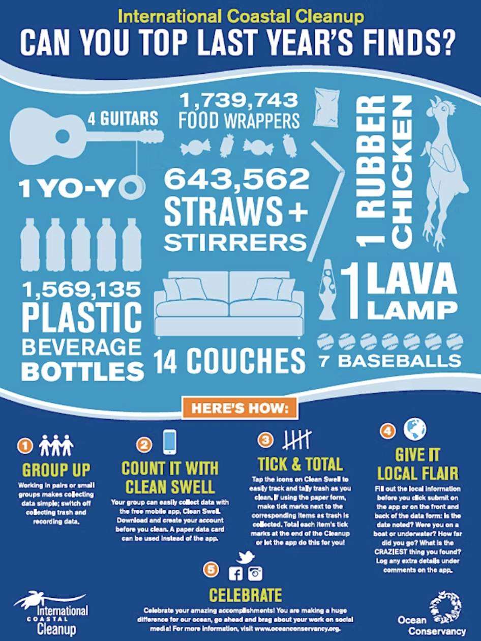 The international effort brings together volunteers from more than 150 countries to clean up trash littering our beaches and waterways.  Groups on a local level recruited volunteers to make a difference in their community.