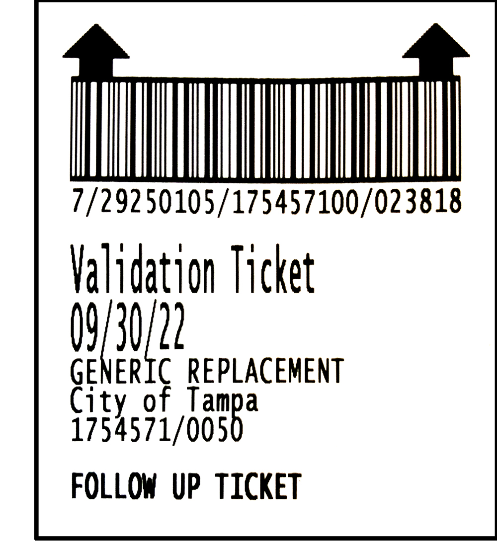 New Daily Billed Accounts (Chaser) tickets are used for reoccurring monthly billed validation accounts. Daily Validation tickets are available for use at the Fort Brooke, Pam Iorio, Twiggs, and Palm Avenue City of Tampa Parking garage locations. The validation tickets are used by surrounding businesses, offices, and agencies to validate parking for their customers or employees. The Centro Ybor, Poe and Tampa Convention Center Garages are now FRICTIONLESS GARAGES and only use codes for daily validations. The requestor will submit a code of their choosing and set parameters of parking authorization. The requestor, in turn, informs all their attendees to park and immediately pre-pay for the parking session by entering their license plate number at a pay station on-site and enter the validation code provided. A receipt will populate, which is recommended to retain.