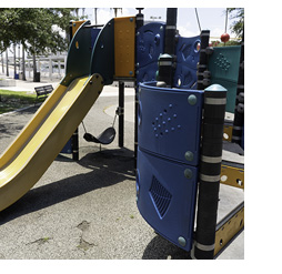 The playground offers a children’s play area with equipment for children ages 2 to 12 years old. Shaded play structures and seating areas will allow children and parents to enjoy the park even on hot summer days.