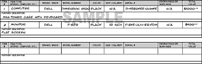 What Can I Do?Your part is easy and simple, all you have to do is record descriptions of your property on the Operation Inventory Log Sheet and keep it in a safe place. If your property is stolen, you will be able to provide the information about the items taken to law enforcement. For any items that do not have serial numbers such as jewelry, you should take photographs and store them with the inventory log sheet. |