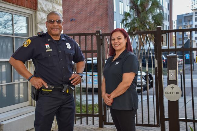 SAFE Officer Brown with Metro 510 Property Manager Jeanette Semidey.
