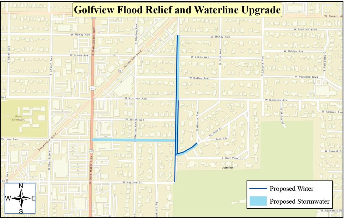 During high intensity and short duration rain events, low-lying areas in Golfview Neighborhood experience frequent and dangerous flooding due to an old and undersized drainage system. It often takes days to drain some of the flooded streets and vehicles are stranded in these flooded streets. This project consists of design and construction of a new drainage conveyance system as well as the replacement and upsizing of the existing drainage conveyance system in a highly urbanized residential neighborhood. Following the completion of Florida Department of Transportation’s drainage project on South Dale Mabry Highway between Henderson Boulevard and West Neptune Street, this project was proposed. The upsized drainage system will connect to the City’s recently completed Dale Mabry-Henderson Trunkline project at West Watrous Avenue and South Dale Mabry Highway. There will be opportunities to implement Green Infrastructure technologies and improve water quality with this project.