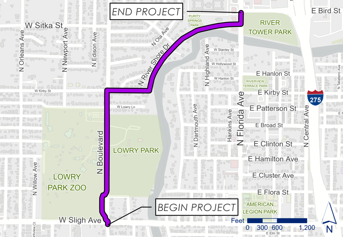 1. Widening the existing 5-foot sidewalk on the west side of Florida Avenue to an 8-foot multi-use path from Bird Street to River Shore Drive