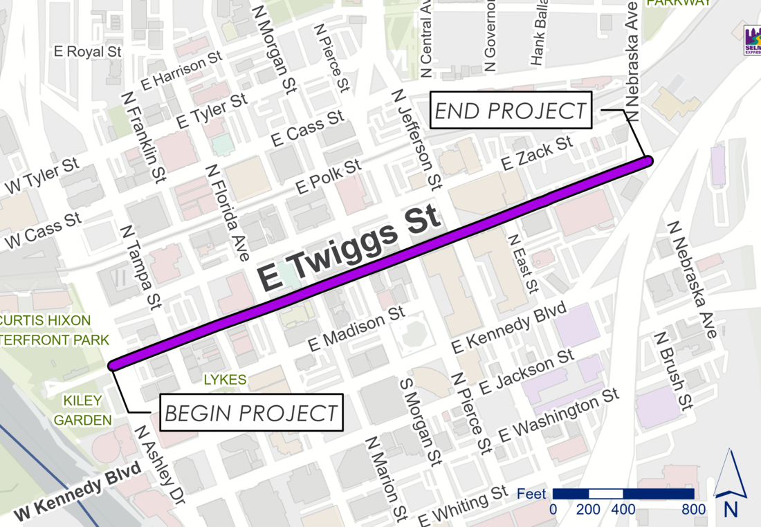 As part of the Tampa M.O.V.E.S. (Mobility, Opportunity, Vision, Equity, and Safety) initiative, the city plans to host several opportunities for residents to engage and provide input on how they envision Tampa transforming in the next 30 years. The Twiggs Street project started as part of the Florida Department of Transportation’s County Incentive Program. Tampa was awarded a grant for the segment between Ashley Drive and Nebraska Avenue. Because the segment between Nebraska Avenue and Channelside Drive is on the City’s High Injury Network – streets with the highest incidence of fatal and severe injury crashes – it is also being reviewed with a focus on safety and multimodal challenges and opportunities.