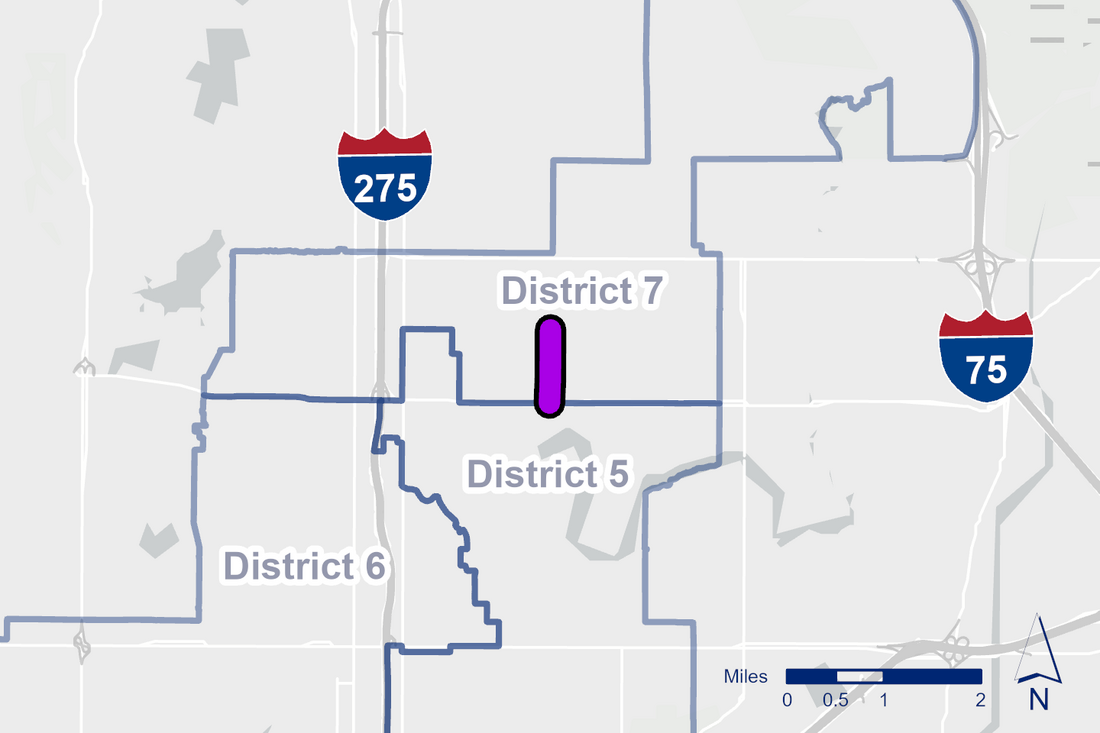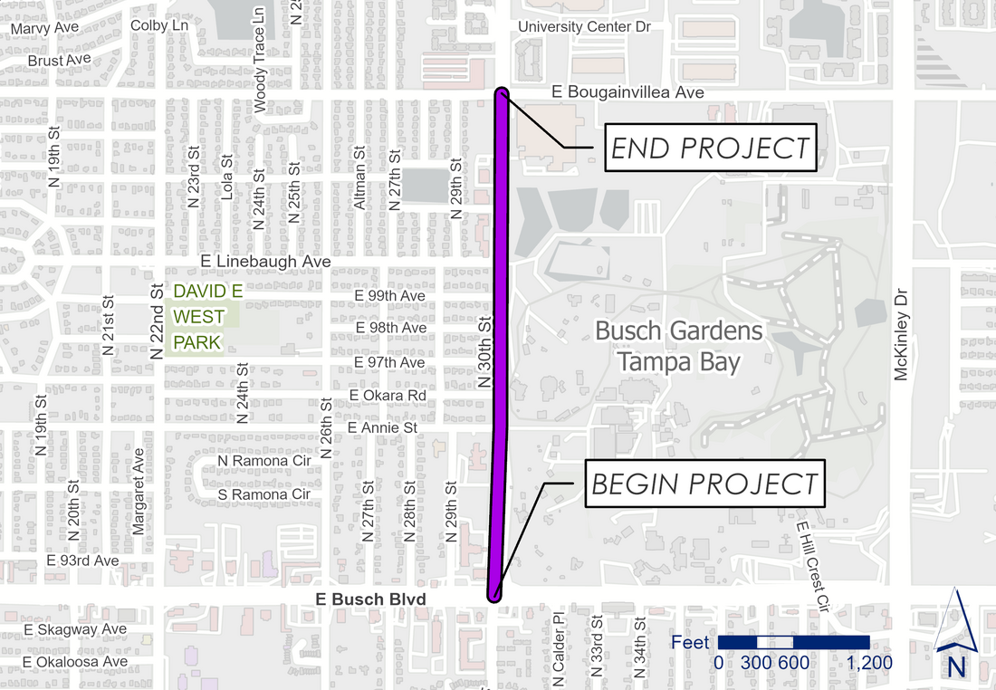 This project provides for complete street roadway improvements to enhance safety and multimodal connectivity, including sidewalks and trails, bicycle facilities, enhanced crosswalks, and other safety measures. Landscaping and green infrastructure components are also included.