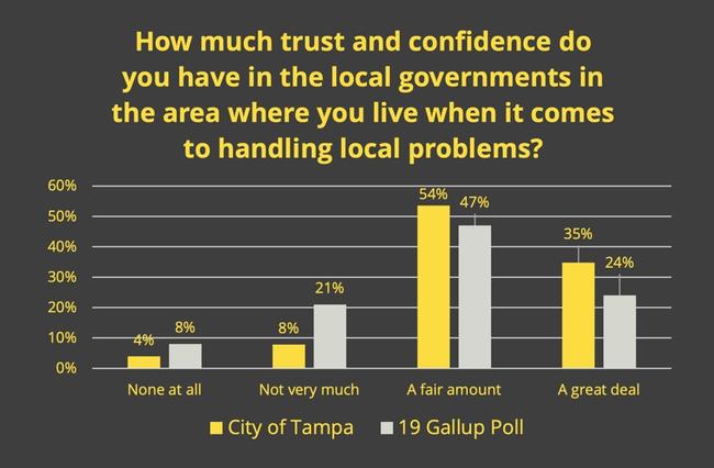 Trust in the City of Tampa improved markedly from 2020 to 2021
