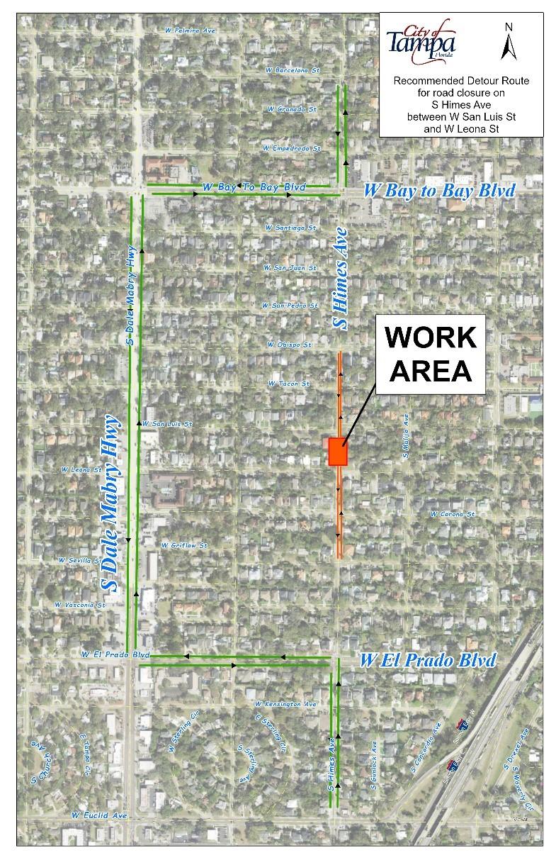 Roads Affected: S Himes Ave between W San Luis and W Leona Streets