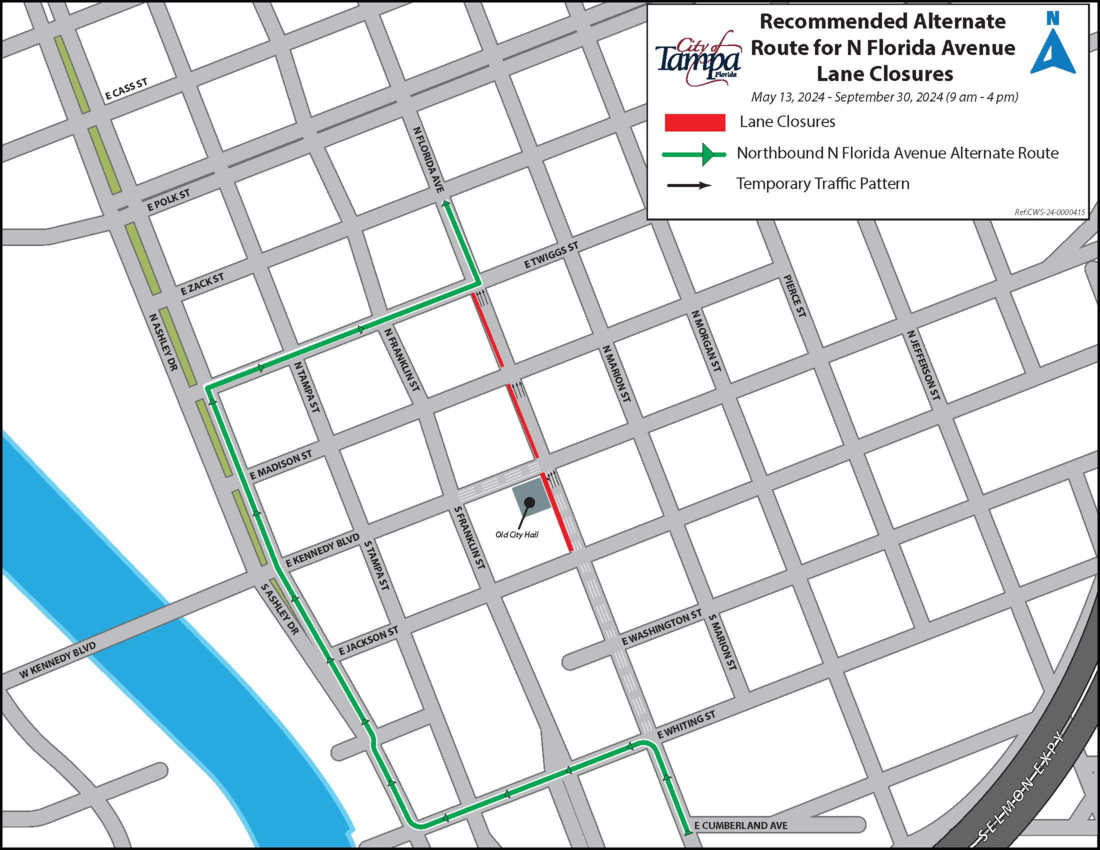 Roads Affected: N Florida Ave (E Jackson St – E Twiggs St)