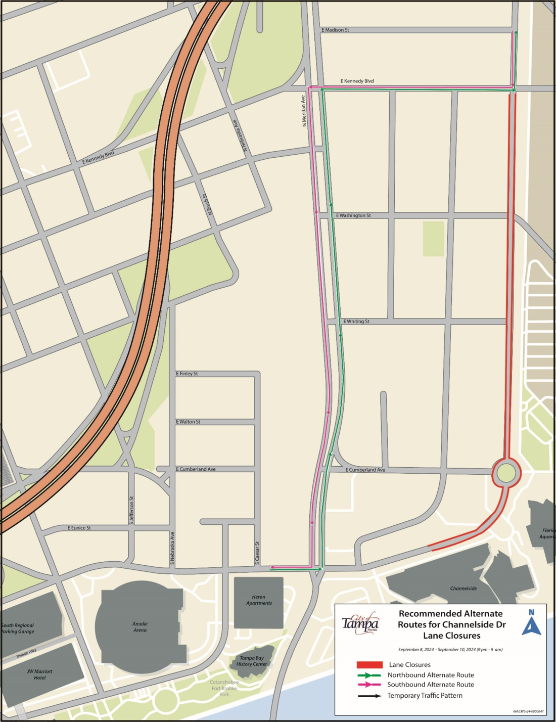 Roads Affected: Channelside Dr (S 12th St – E Kennedy Blvd)