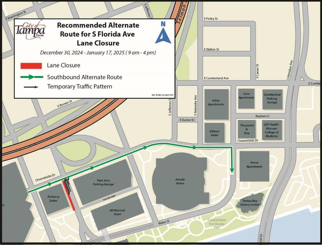Roads Affected: S Florida Ave (Channelside Dr – Water St)