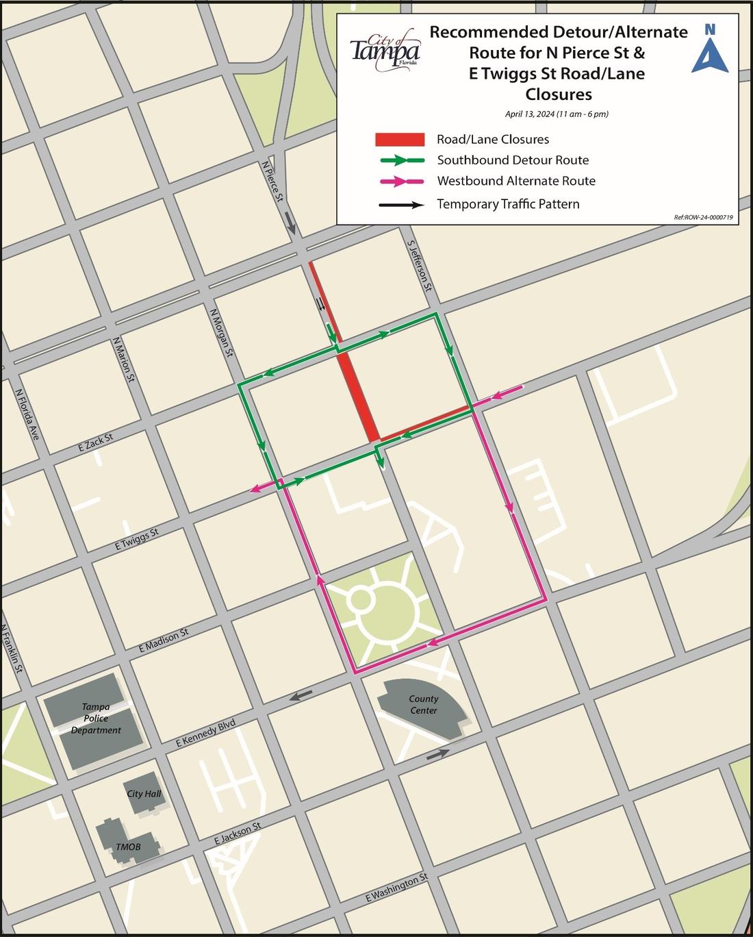 - E Twiggs St (N Jefferson St – N Pierce St)