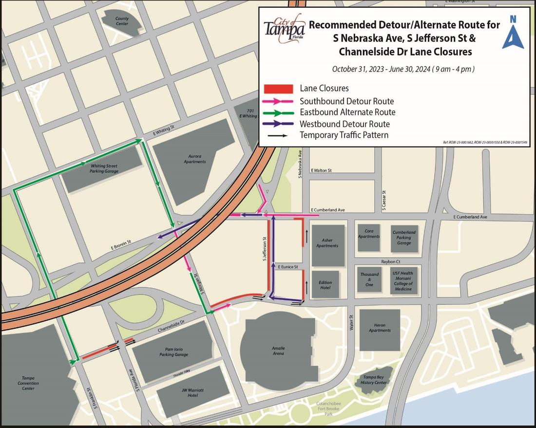 - Eastbound & Westbound Lane Closures & Sidewalk Closure (North Side) – Channelside Dr