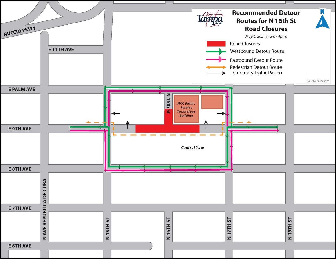 - Full Road Closure & Sidewalk Closures (both sides) – N 16th St