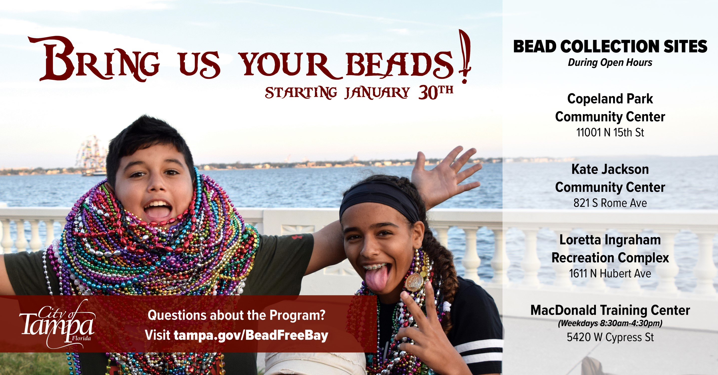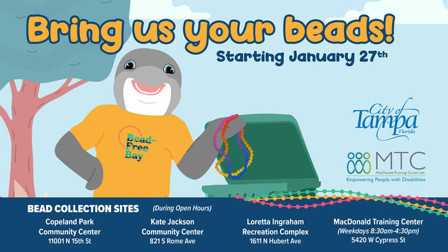 Keep Tampa’s waterways bead-free! Remember that throwing beads or any other items in the water is prohibited according to Florida Statute 403.413. Help us protect our marine ecosystems by keeping beads around your neck, and OUT of our waterways.
