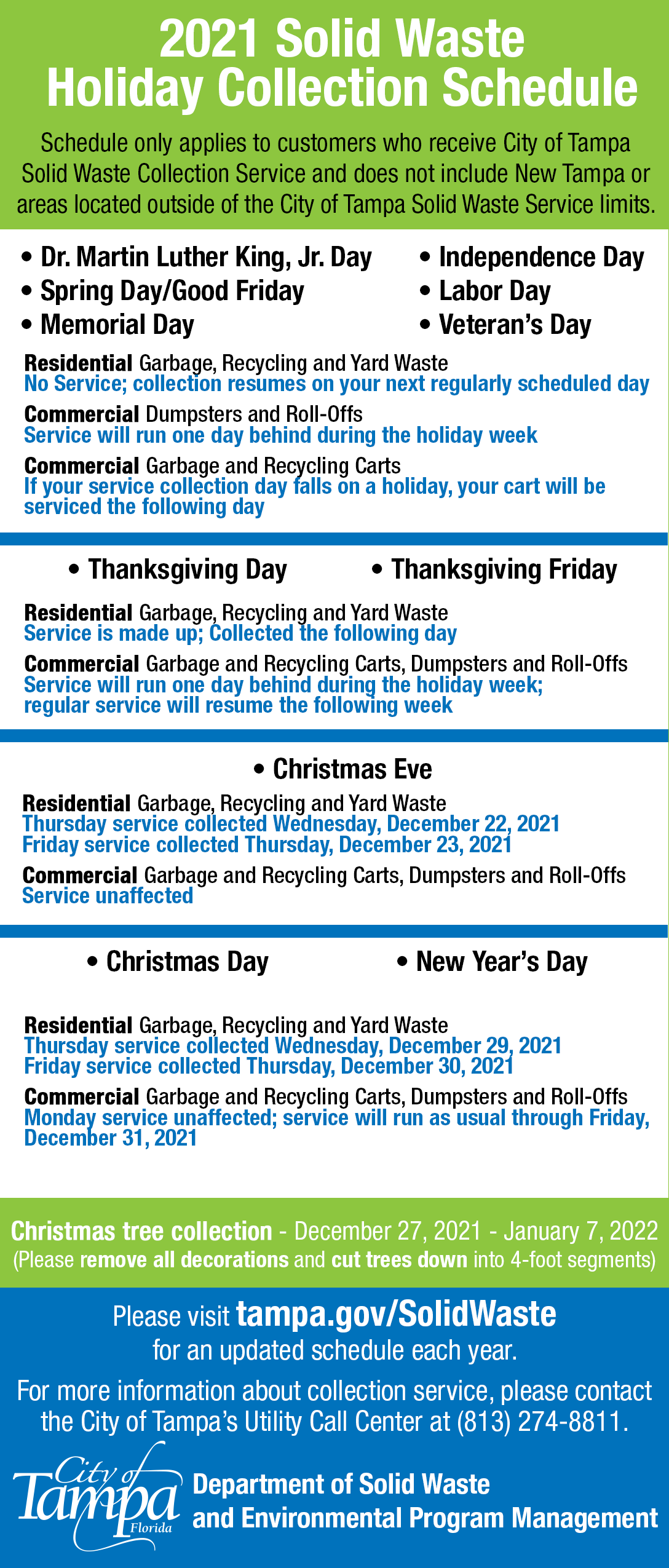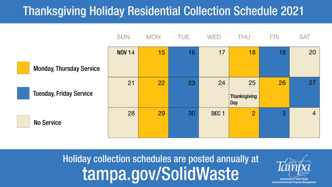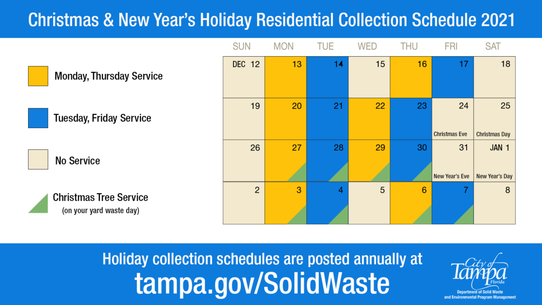 - Residential household garbage (blue carts) collection service is provided twice per week for all City of Tampa utility customers.