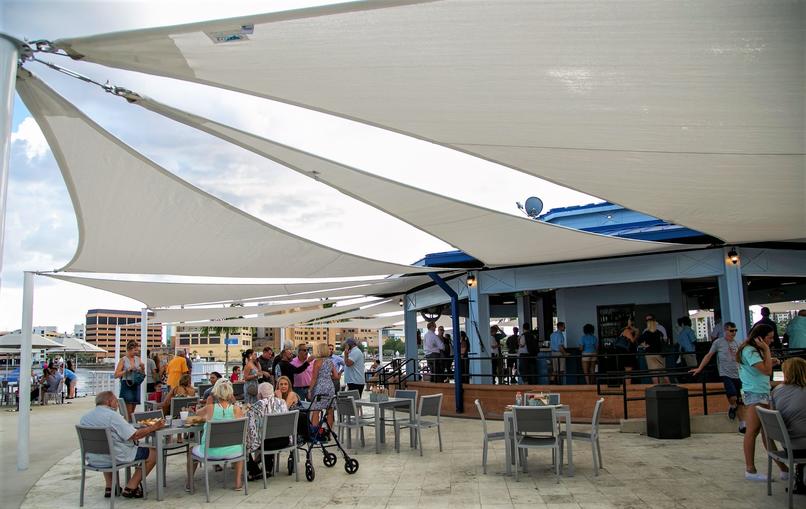 The Sail is a 360-degree open-air bar that is kid-friendly and dog-friendly, too. It specializes in craft cocktails with a Tampa twist. Joggers, cyclists, dog-walkers, and others will often stop at The Sail for a cold drink as they stroll the Riverwalk. The Sail offers special, Tampa Riverwalk to-go cups that you can take along the Riverwalk. You can find the cocktail menu here.