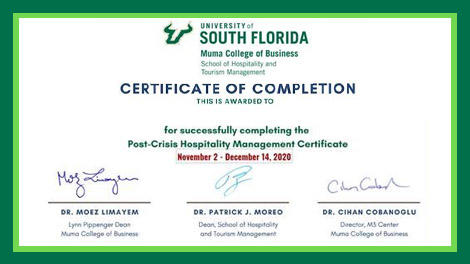 Tampa Convention Center is proud to announce the Certification of its Convention Services Division, having successfully completed the University of South Florida’s Muma College of Business – School of Hospitality and Tourism Management “Post-Crisis Hospitality Management” program. Tampa Convention Center continues to be a highly recognized organization in the hospitality industry having created a forward leaning, TCC Ready, Post-COVID Environment and achieving the coveted Global Bio-Risk Advisory Council “GBAC STAR” Accreditation.